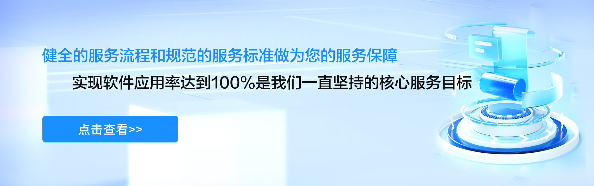 健全的服務(wù)流程和規(guī)范的服務(wù)標準做為您的服務(wù)保障!實現(xiàn)軟件應(yīng)用率達到100%是我們一直堅持的核心服務(wù)目標!